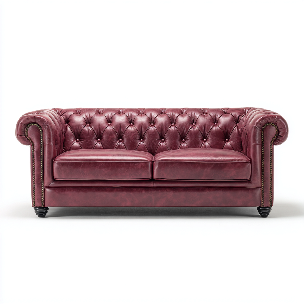 Straight Sofa Leather Upholstery 200x90x85 cm - Burgundy - Classic Chesterfield Style