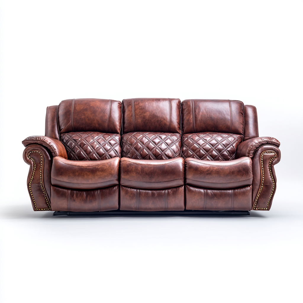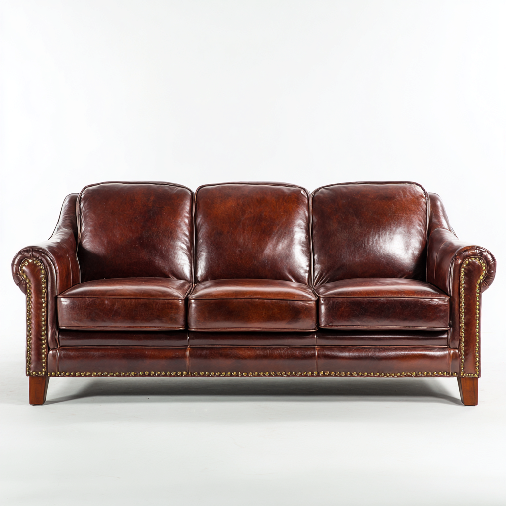 Straight Sofa Leather Upholstery 225x95x90 cm - Brown - Classic Comfort Design
