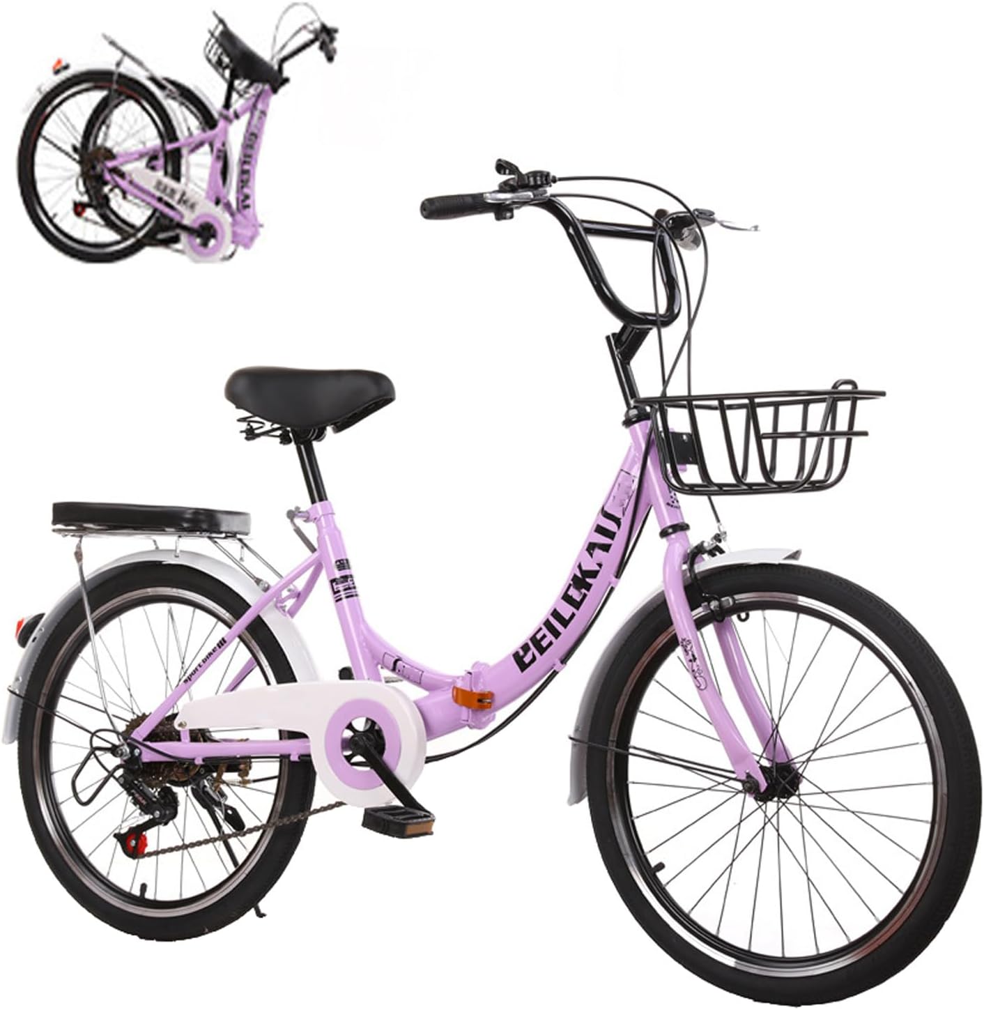 Key Specifications • Bike Type: Folding Bike, Mountain Bike • Age Range: Adult • Number of Speeds: 7 • Colour: Purple • Size: 22 Inch • Frame Material: High Carbon Steel