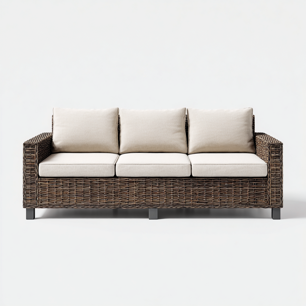 Outdoor Sofas Wicker Frame Fabric Cushions 210x85x75 cm - Beige-Brown - Outdoor Patio Design
