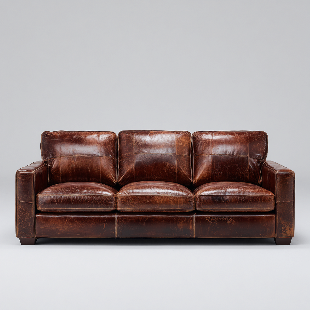 Straight Sofa Leather Upholstered 210x90x85 cm - Brown - Modern Living Room Design