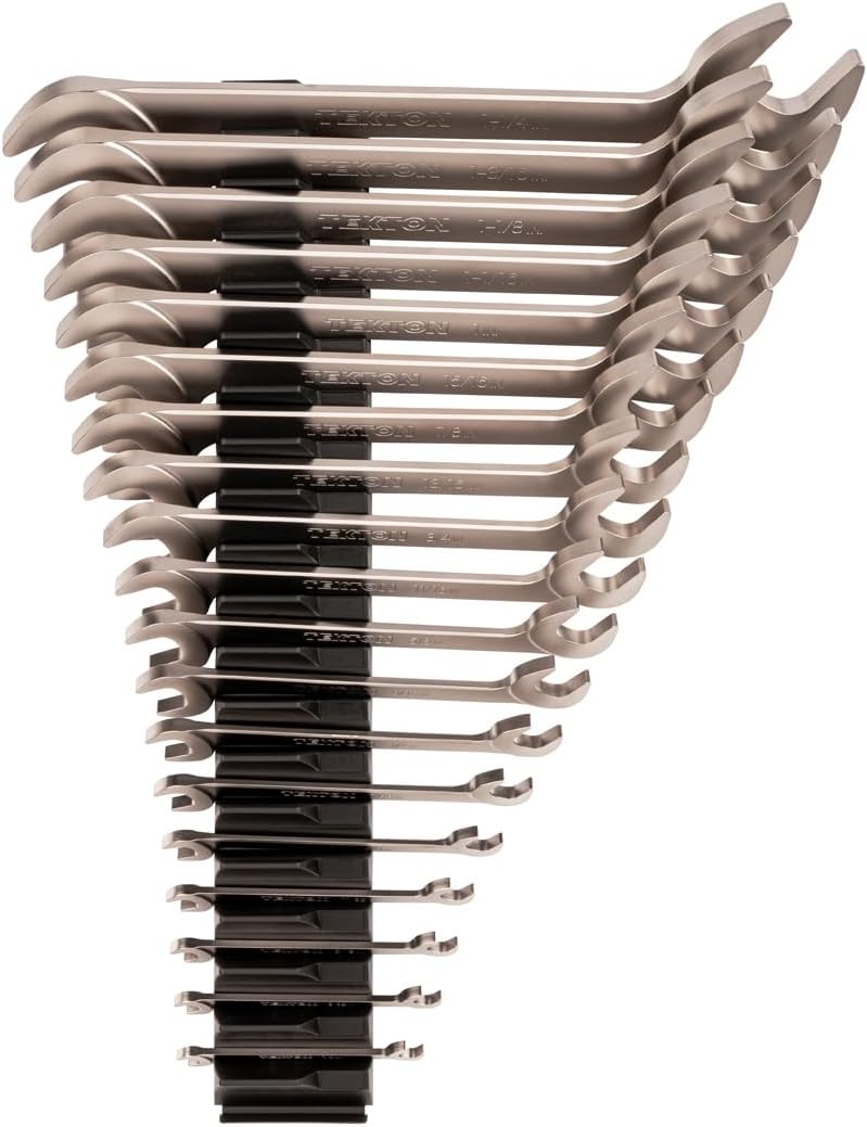 Product Overview The TEKTON 19-piece angle head open-end wrench set is a professional-grade tool collection designed for efficient fastening tasks. Made in the USA, this set includes a modular wrench organizer for convenient storage and quick access.